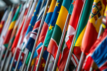 International business symbolism  array of various country flags displayed in a row