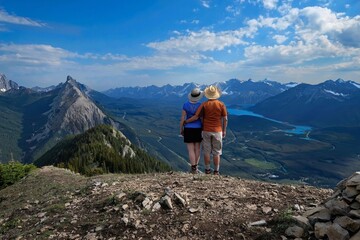 Couple hiking adventure in scenic mountain landscape