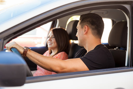 latin couple driving car and having fun in a trip in Mexico Latin America, hispanic people