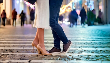 Charming animated cute couple on busy city streets