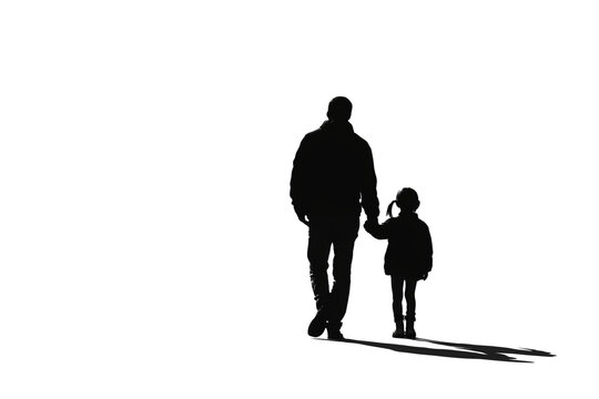 A set of touching father and daughter silhouette moments captured in shadow outline isolated on a transparent background