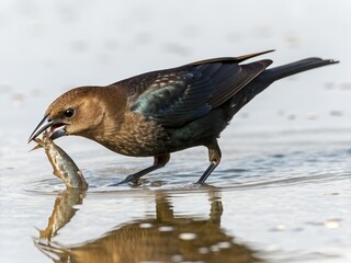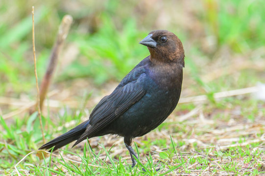 Brown-headed cowbird in the grass near the Minnesota River in the Minnesota River National Wildlife Refuge