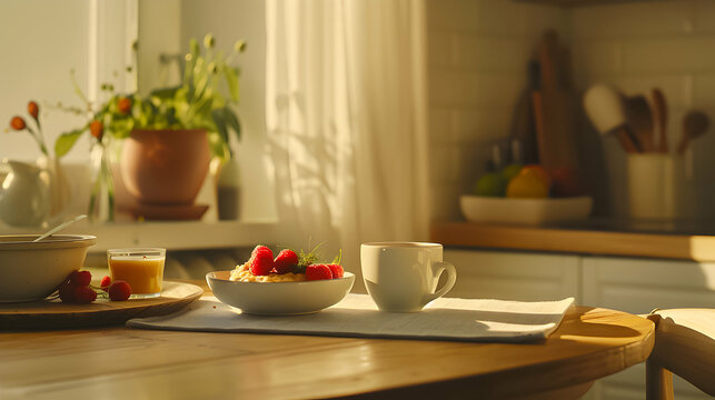 Healthy breakfast preparation in cozy kitchen