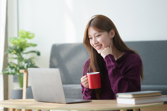 Cozy Workspace With Laptop And Red Mug For Remote Work Or Studying Images