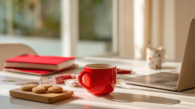 Red Mug Cookies Laptop Books Cozy Home Office Workspace