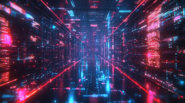 Displaying C++ code snippet floating through digital space, with binary digits and red euro symbols