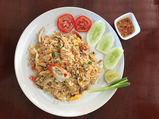 Thai fried rice with crabmeat in Thailand.