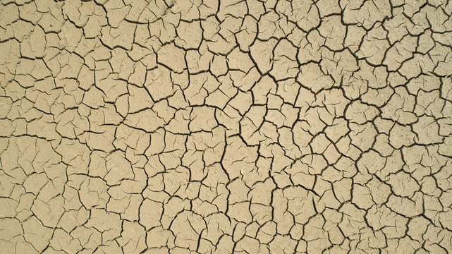 Aerial view of Dry cracked earth. Climate change and drought land. Global warming.
