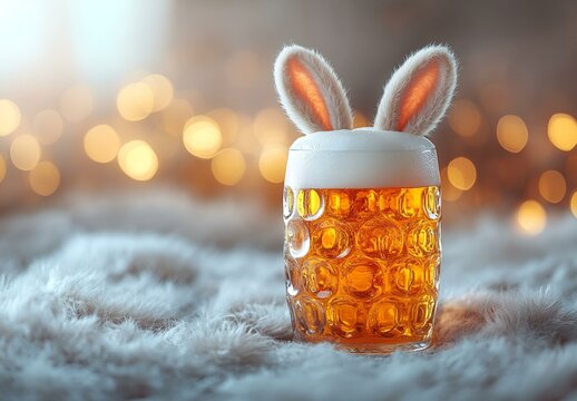 a glass of beer with bunny ears.