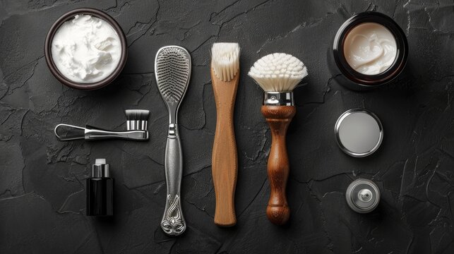 Crafting tools arranged on wooden surface