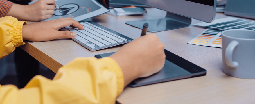 Creative hands crafting origami with pastel paper cutouts on wooden desk