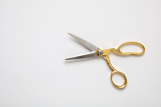 Scissors gold and silver isolated against white background