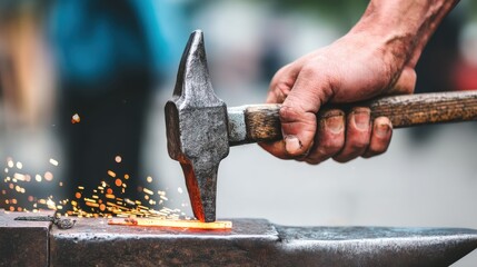 Blacksmith working craftsmanship in workshop interior