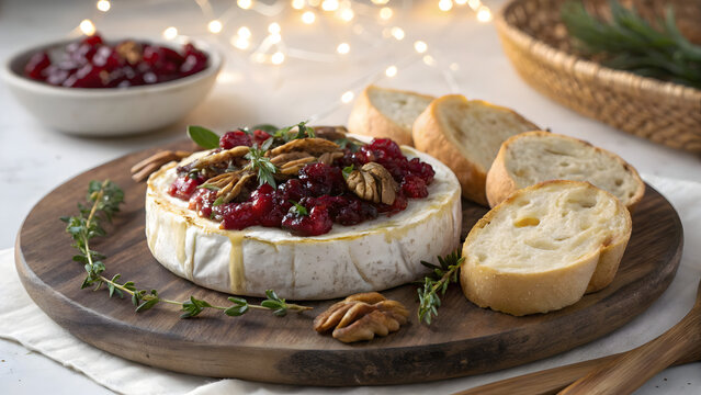 Rustic baked Brie with cranberry compote and toasted walnuts
