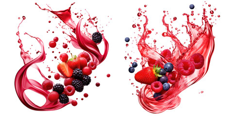 Blueberry Smoothie Explosion A Glass of Refreshment Surrounded by a Pink Splash and Scattered Berries on Transparent