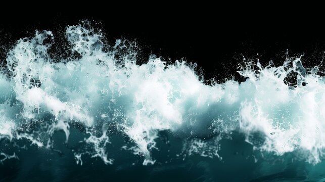Dynamic waves crashing with white foam, captured in a powerful and energetic moment against a dark background.