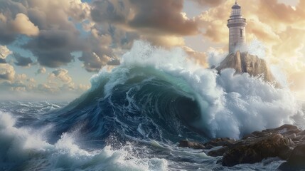 Powerful ocean wave crashing against rocky shore, showcasing the raw beauty of nature's force and the dynamic movement of water