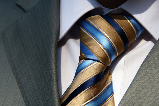 Strapped neckties in different on white background. Top view of striped tie on white background. Father's day concept