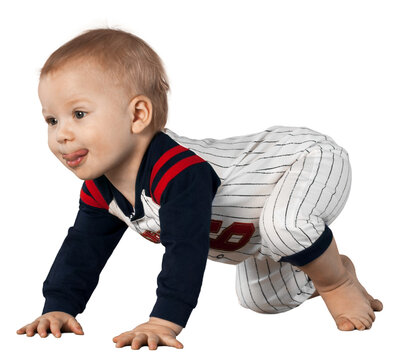Crawling Toddler in Baseball Uniform - Isolated