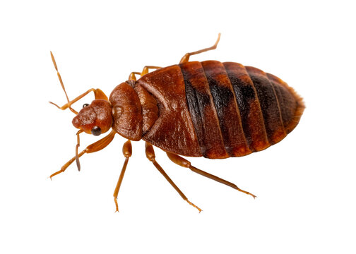Extreme close up of a bed bug revealing its segmented body, legs, and head with visible eyes, perfect for pest control and entomology education materials.