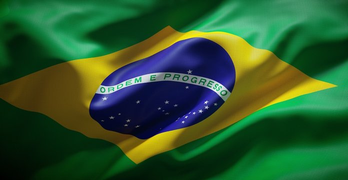 Brazil flag painting on high detail of wave cotton fabrics .