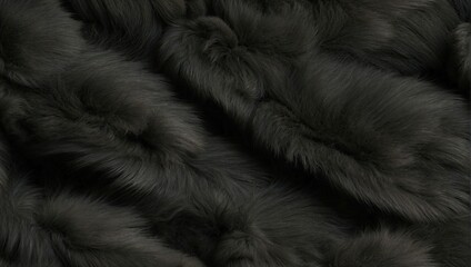 Luxurious black fur texture with dense, soft fibers creating a rich and opulent visual