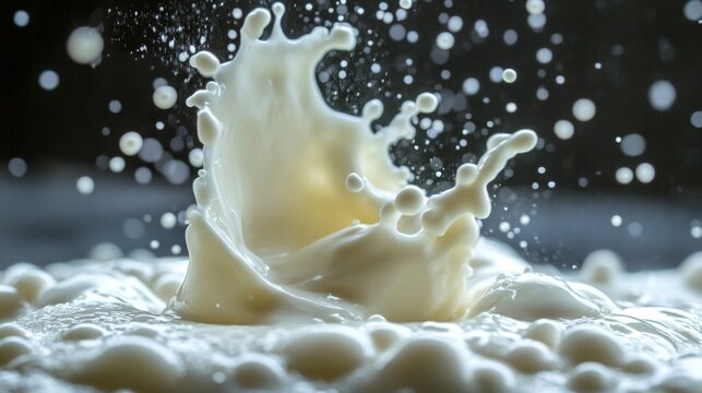 Milk pours into a foamy bowl, creating a refreshing backdrop for advertising dairy products or cooking recipes.