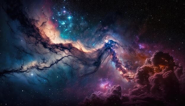 Night sky filled with colorful stars and the Milky Way galaxy Background of the starry sky with a panoramic view Ideal for a copy space image