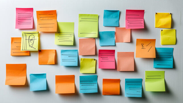Colorful Sticky Notes Wall for Brainstorming. Vibrant wall covered in colorful sticky notes, representing a brainstorming session in a creative workspace.