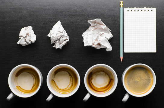 Creative Break With Coffee And Crumpled Paper Notes Images