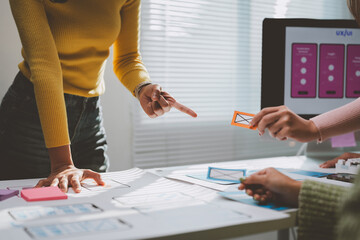 Team of creative designers collaborating on project in modern office