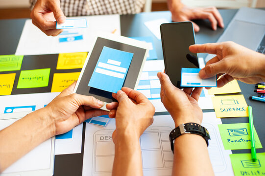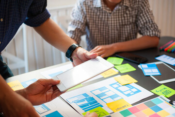 Designers are in discussions with their colleagues to design websites and mobile apps.