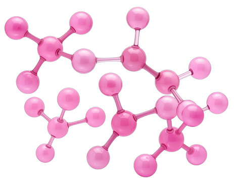 Pink molecular structures against a black background, representing scientific or chemical concepts