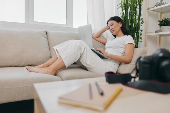 Female Photographer In Studio Reviewing Images From Photo Shoot On Computer