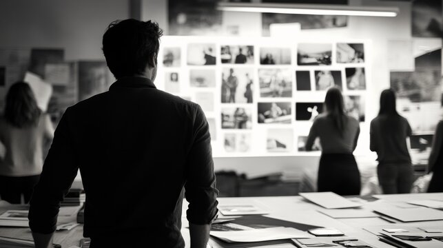 Creative Professional Analyzing Photographs At Collaborative Workspace Images