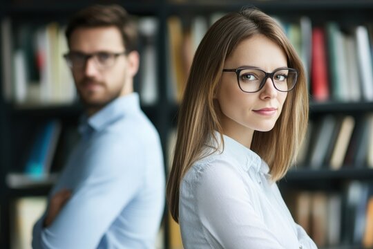 Creative Professionals Collaborating In Office Library Setting Images
