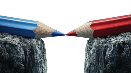 A creative connection: Blue and red pencils bridging the gap with artistic flair