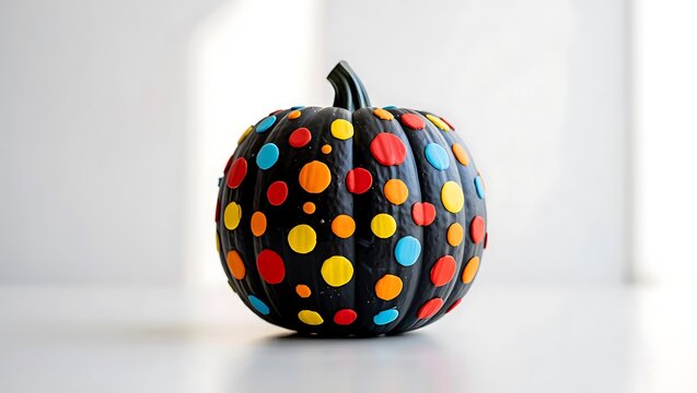Handmade decorative Halloween pumpkin crafted with colorful candy dots isolated on transparent background