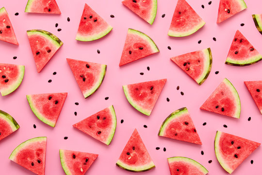 Vibrant watermelon slice pattern on purple background