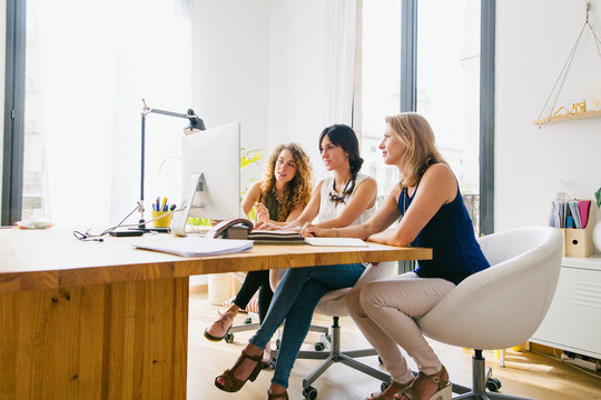 Empowered women collaborating on creative workspace project