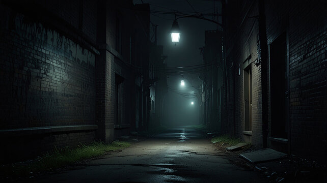 Dark Misty Alley with Flickering Lights