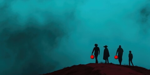 Creative halloween graphic with spooky eyeball on blue backdrop