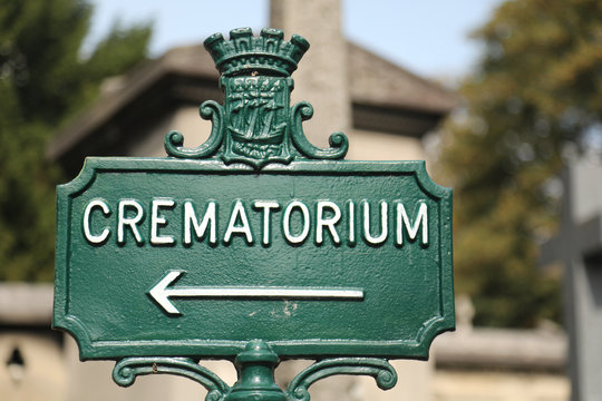 Crematorium, a coffin with a human body burns in the crematorium oven.