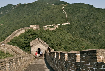 Ancient Fortified Wall with Crenellated Parapets Under a Clear Sky
