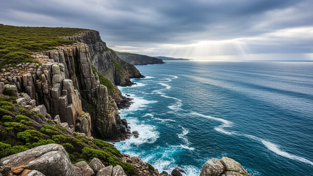 Dramatic Sea Cliffs and Ocean Sunbeams