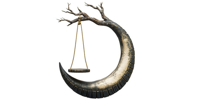 Sailboat drifts silently on calm waters under starry sky, illuminated by glowing crescent moon. serene atmosphere evokes sense of tranquility and wonder
