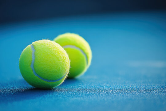 Yellow tennis balls on court. Closeup view of tennis balls on blurred background. Generated AI