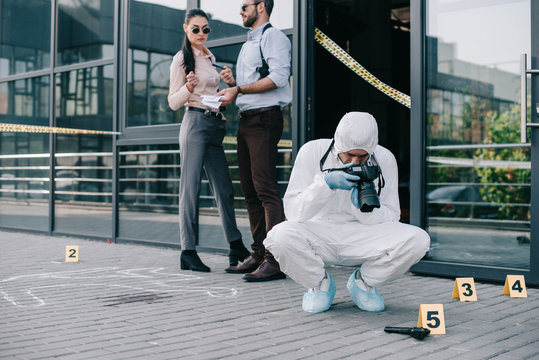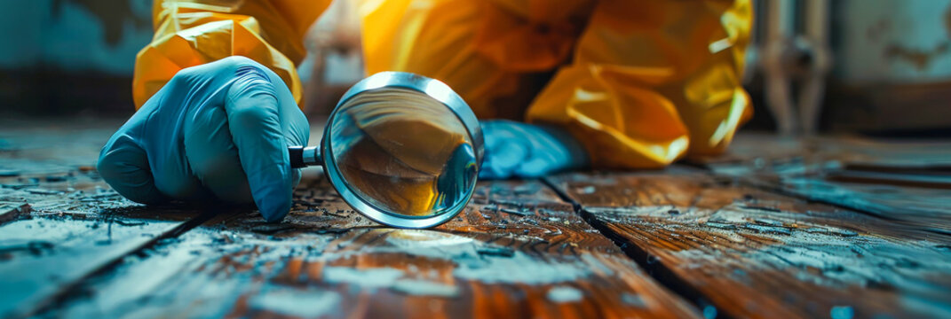 Forensic Investigator Examining Crime Scene with Magnifying Glass