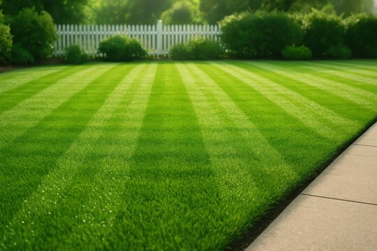 Soccer ball resting on white field line at grass pitch in bright sunlight