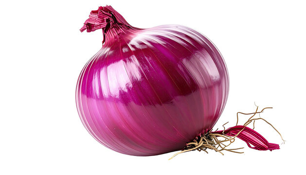 Close-up of a vibrant, whole red onion, isolated on a transparent background